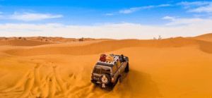 Pour les amateurs d’aventure et de sensations fortes, Djerba Guide propose le Circuit 4×4 La Saharienne Tunisie, un voyage incontournable pour explorer la beauté et l’immensité du désert tunisien. Ce programme unique vous emmène au cœur du Sahara à bord d’un véhicule tout-terrain robuste, idéal pour affronter les sentiers sablonneux et les terrains imprévisibles. En chemin, vous découvrirez des paysages époustouflants : des dunes dorées qui bougent au gré du vent, des oasis verdoyantes ombragées de grands palmiers, et de vastes espaces aux horizons infinis qui vous offrent un véritable sentiment de liberté. Loin du tumulte de la ville, ce voyage vous offre calme et sérénité, seulement troublé par le bruit du vent et des pneus sur le sable. Confortablement installé dans le 4×4, vous vivrez une expérience inoubliable, riche en découvertes à chaque pas.